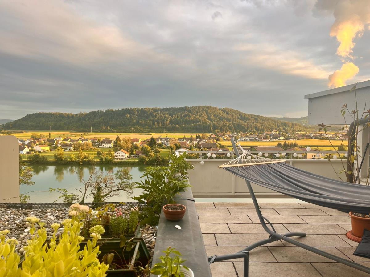 grosse Sonnenterrasse ca. 18 m², traumhafter Panoramarheinblick u. Schweiz