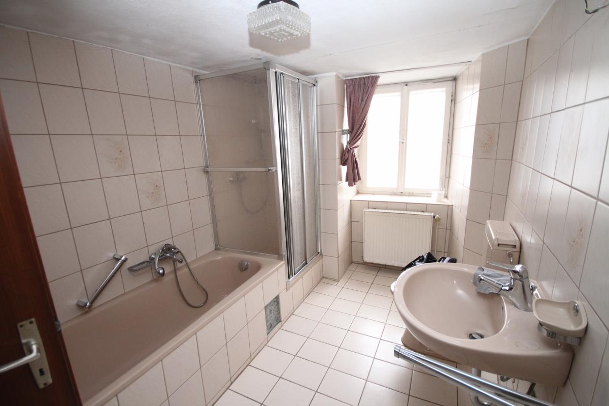 - Kernsanierung im Obergeschoss: gedämmt, neuer Fußboden, teilweise Erneuerung des Heizungs- und Rohrwassersystems bis in den Heizkeller, Deckenhochsetzung und -dämmung.